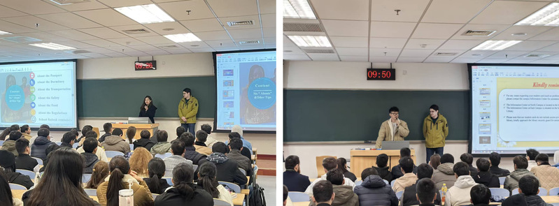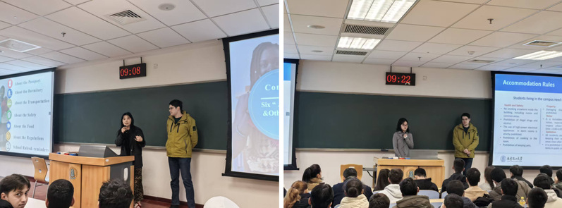 随后,会议进入务实细致的政策宣讲环节。负责留学生公寓管理的邢子妍老师就学生们最为关切的住宿问题进行了条分缕析的讲解。她向学生们展示了公寓管理的各项规章制度,重点强调了宿舍消防安全、用电规范、门禁管理及和谐的邻里关系营造等。她叮嘱同学们务必时刻将安全置于首位,共同维护好“家”的温暖与安全。