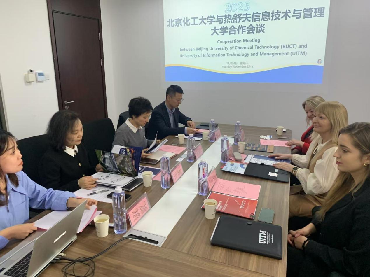 11月24日,北京化工大学与波兰热舒夫信息技术与管理大学(University of Information Technology and Management, UITM)在我校东校区图书馆举行合作会谈。北京化工大学国际交流与合作处副处长冯江鸿、国际教育学院副院长(主持工作)鄢红、信息科学与技术学院副院长张帆、国际教育学院外事工作部主任张帅,与波方国际招生与合作部主任Magdalena Louis、管理与信息技术学院副院长Izabela Cichocka及国际招生与合作部专员Milena Skiba共同出席会议。双方围绕深化两校国际合作,重点探讨在管理、信息技术等领域共建联合培养项目,为师生搭建更加广阔的国际交流平台。