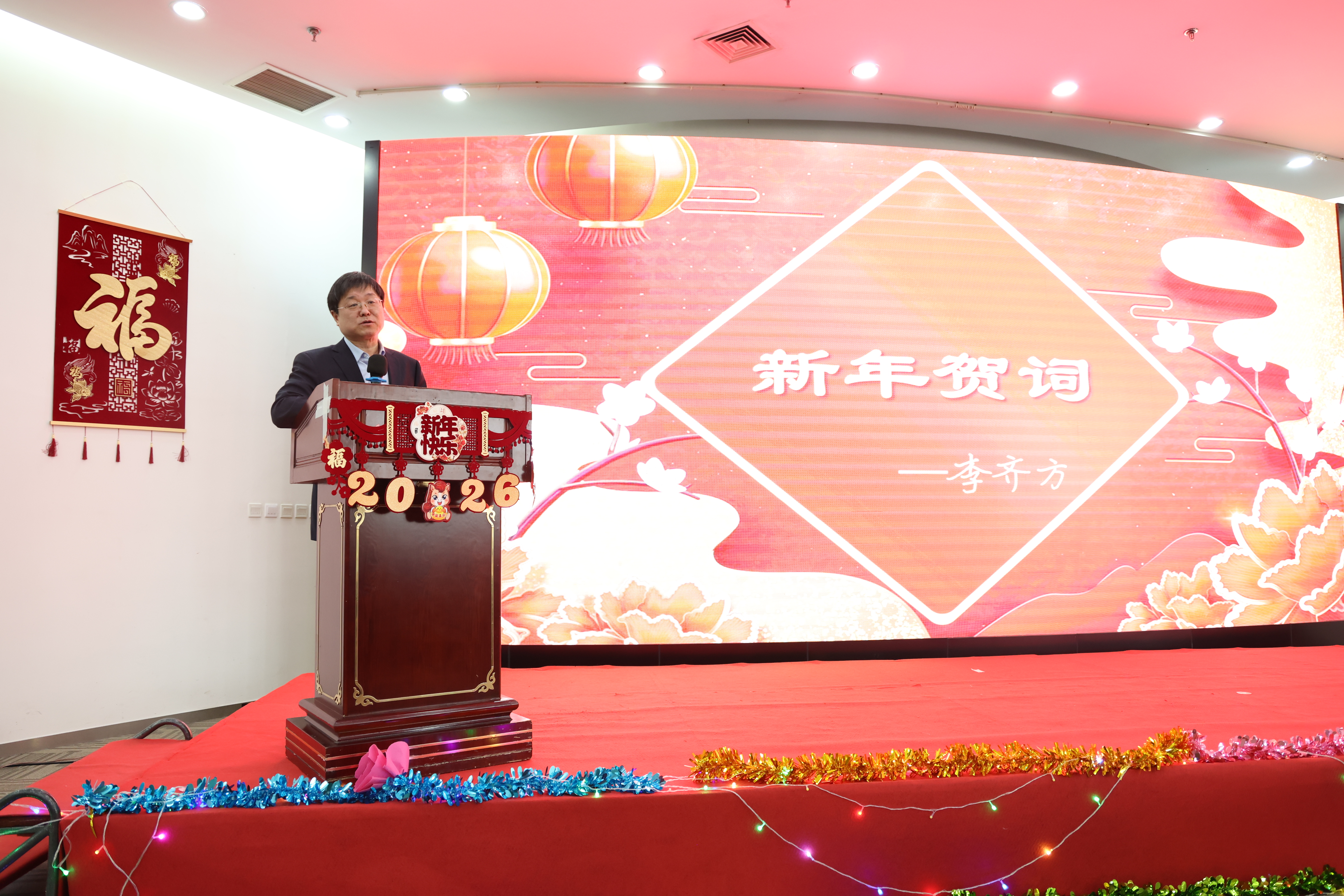 李齐方在致辞中简要回顾了过去一年学院取得的主要成绩,充分肯定了学院教职工在推动学校及学院高质量发展中做出的积极贡献。他对学院未来的发展提出明确要求和殷切希望,并向全体教职工送上新春的美好祝愿。