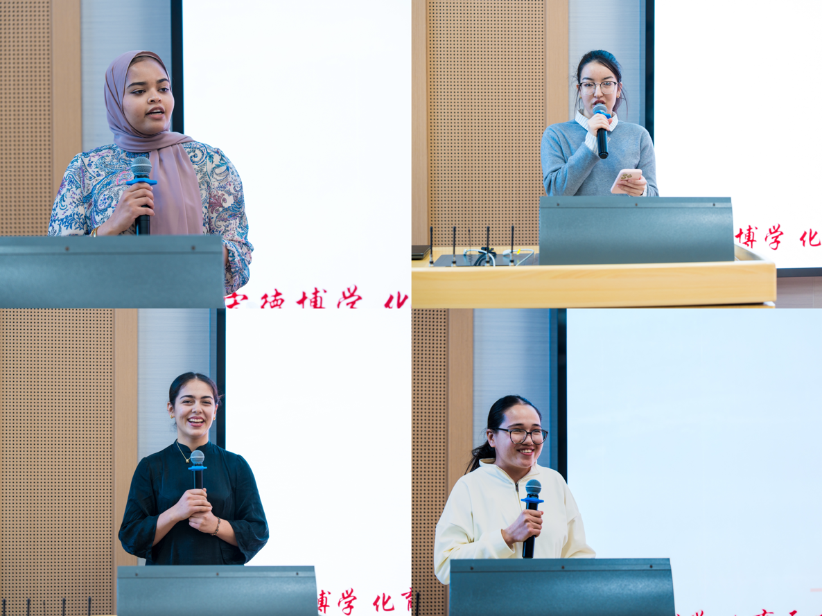 在轻松愉快的交流环节,各班优秀学生代表也踊跃发言。来自初级一A班的阮文青分享了他对汉语的心得体会;初级一B班的雪女讲述了参加文化实践活动的难忘经历;初级二班的娜谷则表达了对老师们耐心指导的衷心感谢,并期待未来能在专业领域运用好汉语。小米、玛丽则结合自身的经历,分享汉语给予她们生活的美好变化,安明、卡玛也表示汉语给他们带来了意想不到的惊喜,激发了他们浓厚的学习兴趣。