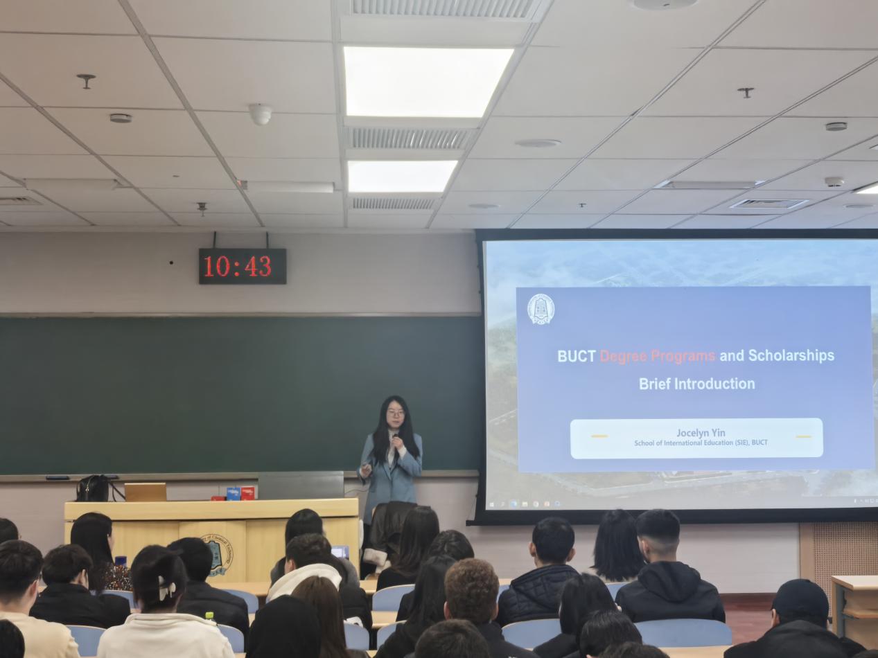 紧接着,负责本科生招生工作的尹雪娇老师登台,为同学们描绘了更广阔的未来蓝图。她详细解读了外国学生申请北京化工大学本科生的具体流程、各类奖学金的申请标准及重要注意事项。这不仅是一次信息的发布,更是一次升学路径的指引,让在场学子清晰看到了从汉语进修到专业深造的光明坦途。
