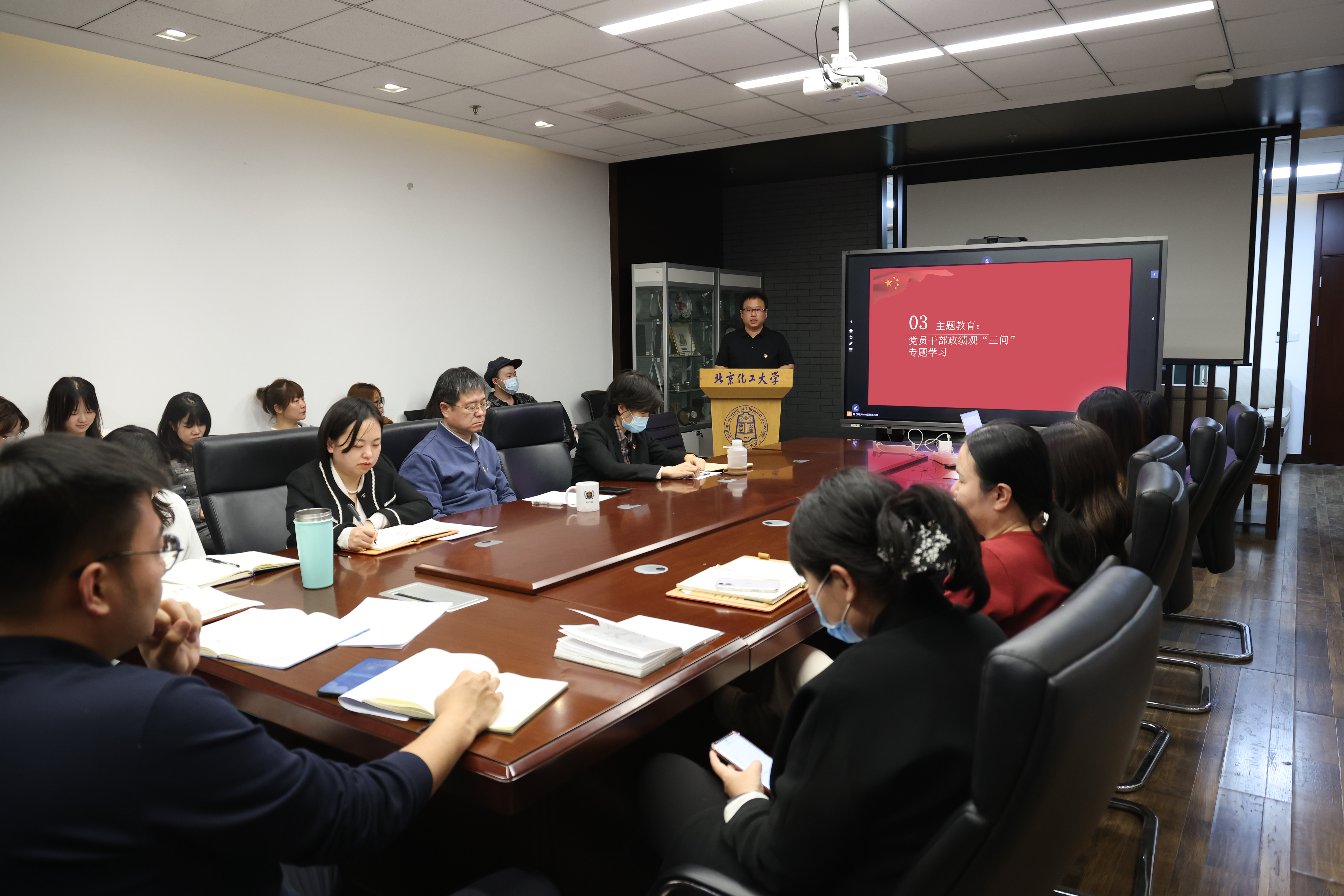在主题教育学习环节,教工党支部书记王邦仁围绕党员干部政绩观“三问”开展领学。他强调,全体教职工要始终牢记为党育人、为国育才的初心使命,坚决纠正一切偏离育人本质的错误倾向,将正确政绩观贯穿立德树人根本任务和国际人才培养全过程,以实际行动答好新时代教育工作者的政绩答卷。